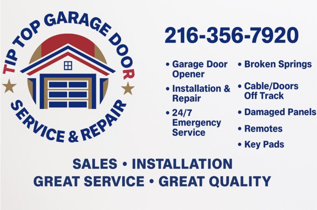 Tip Top Garage Door is a trusted garage door service provider serving homeowners and businesses across Ohio. Our mission is to deliver reliable, high quality, and affordable garage door solutions that keep your home safe and your daily routine running smoothly. With years of experience and a strong focus on customer satisfaction, we take pride in offering fast response times, expert workmanship, and friendly service.